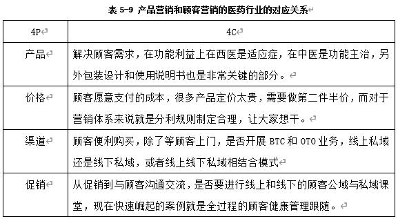 1. 产品营销和顾客营销的医药行业的对应关系(见表5-9)。