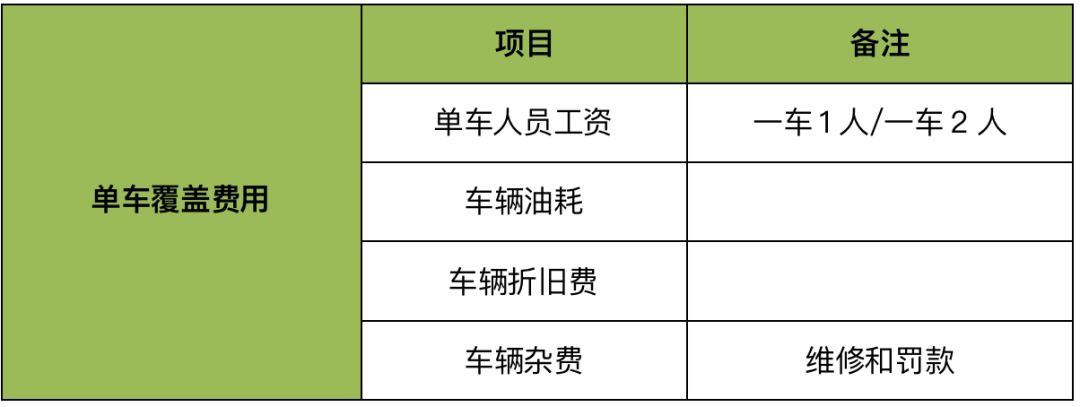 单车覆盖费用如表3-4所示。