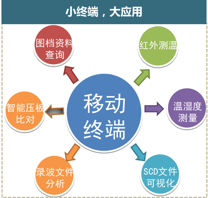 移动终端整合红外热成像仪、环境温湿度计、数字化继电保护试验仪等常用工具,集成图档资料查询、SCD文件可视化、录波文件分析、智能压板比对等功能应用,提高现场智能感知和作业能力,提升单兵装备专业化水平(见图8-8)。