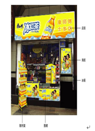 (2)可用的生动化辅助物:海报、串旗、冰箱围边、阳伞、店招、休闲桌椅、陈列架等。