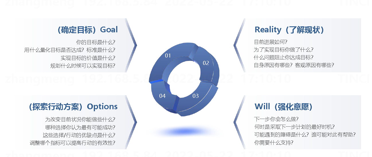在90天陪练计划中,新任干部转身成功与否的体现便是绩效目标的达成,新任干部的直属上级务必在过程中进行定期绩效回顾,及时纠偏。直属上级定期绩效回顾推荐使用GROW绩效访谈法。