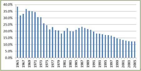 我们把20岁的年轻人作为企业的适龄工人,从1985年开始,每年年轻工人供给企业和社会的数量如图1-2所示。